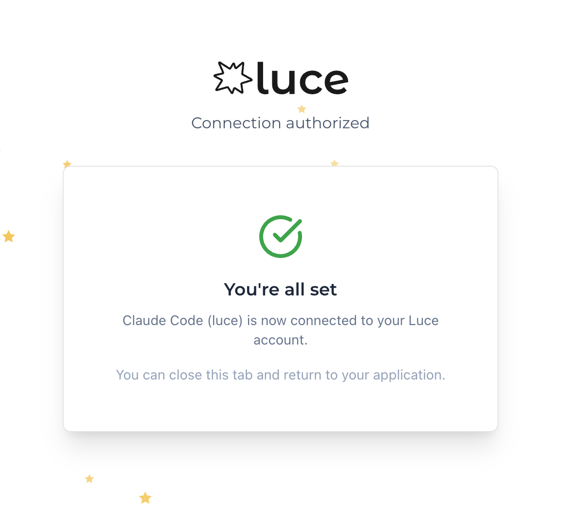 Luce MCP works with Claude (Pro, Max, and Code), Cursor, ChatGPT, OpenClaw, and any MCP-compatible client. We recommend Claude for the best experience. All connections use OAuth, no API keys needed.